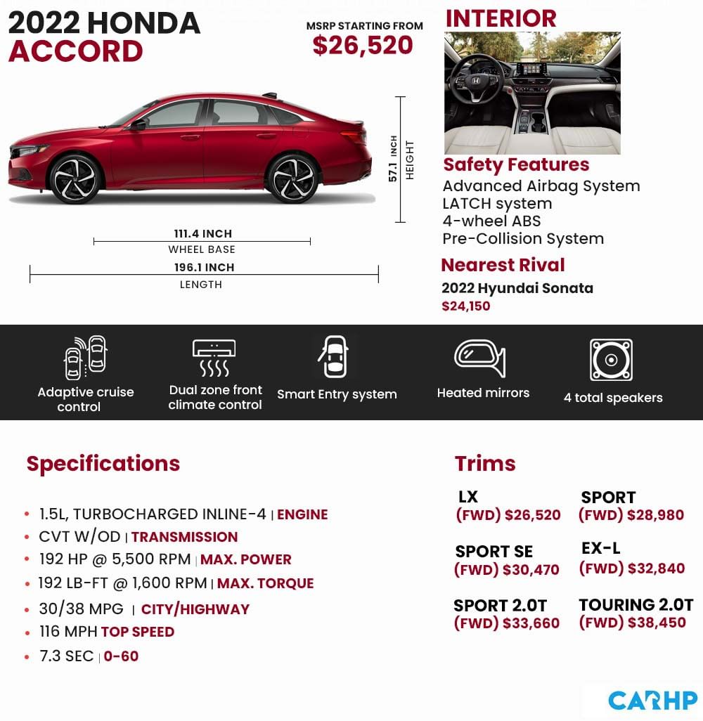 Honda Accord Sport 1 5t Cvt 2022 Price In Usa Features And Specs Ccarprice Usa